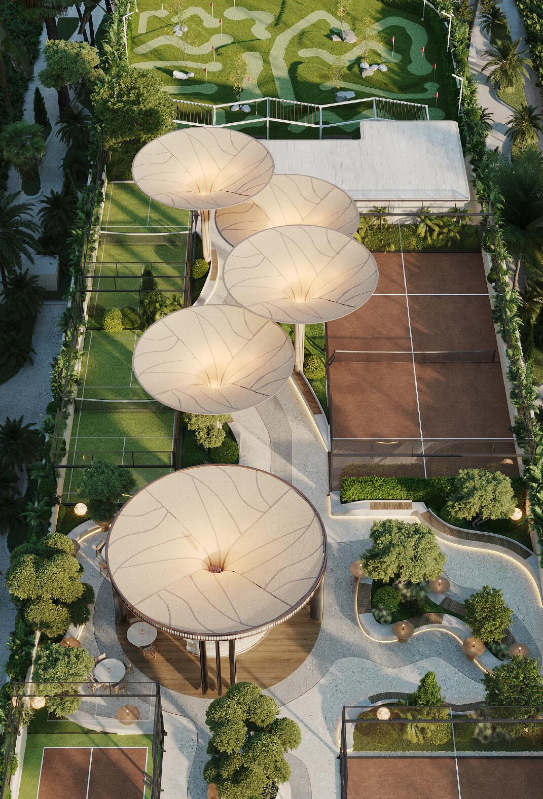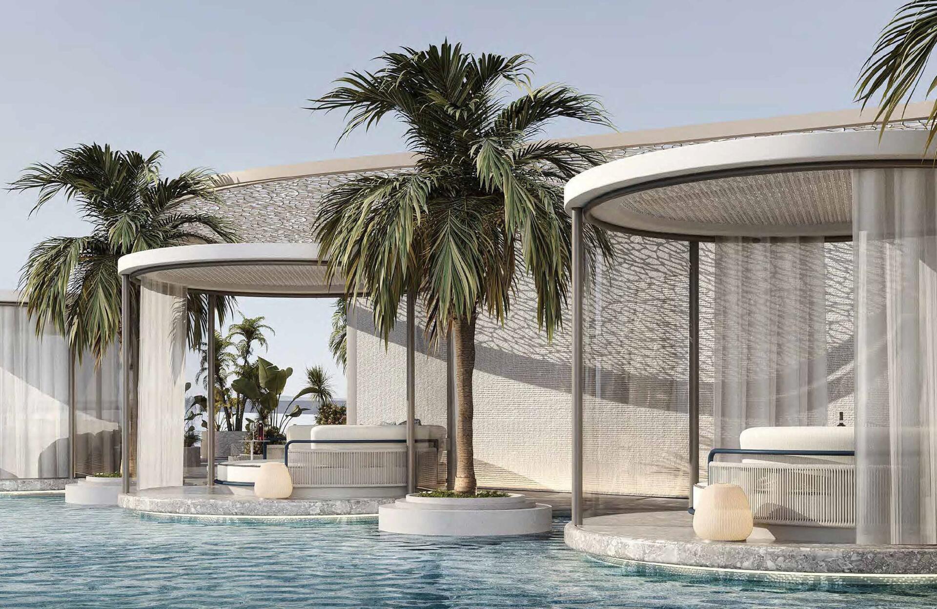 Residences are designed to combine natural materials with modern comfort, ensuring a refined and relaxing atmosphere.