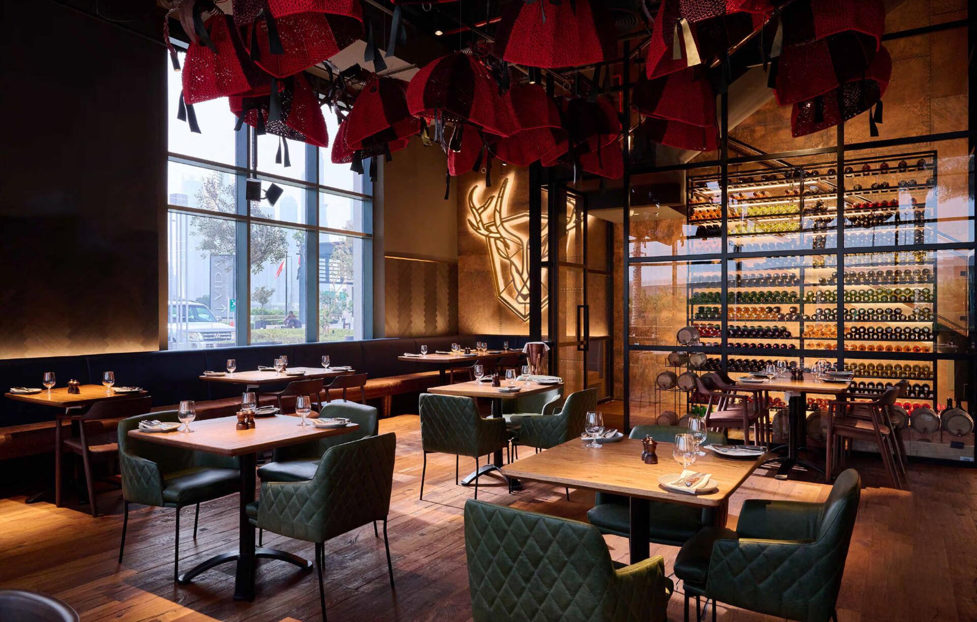 Use of natural stone, wood, and glass finishes