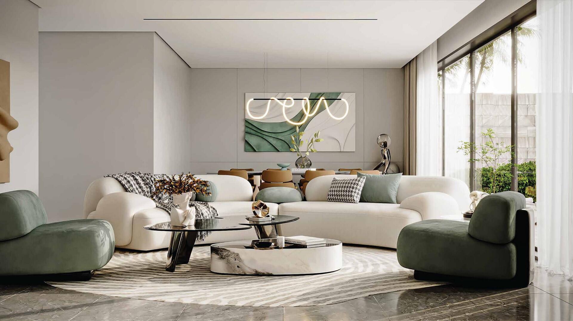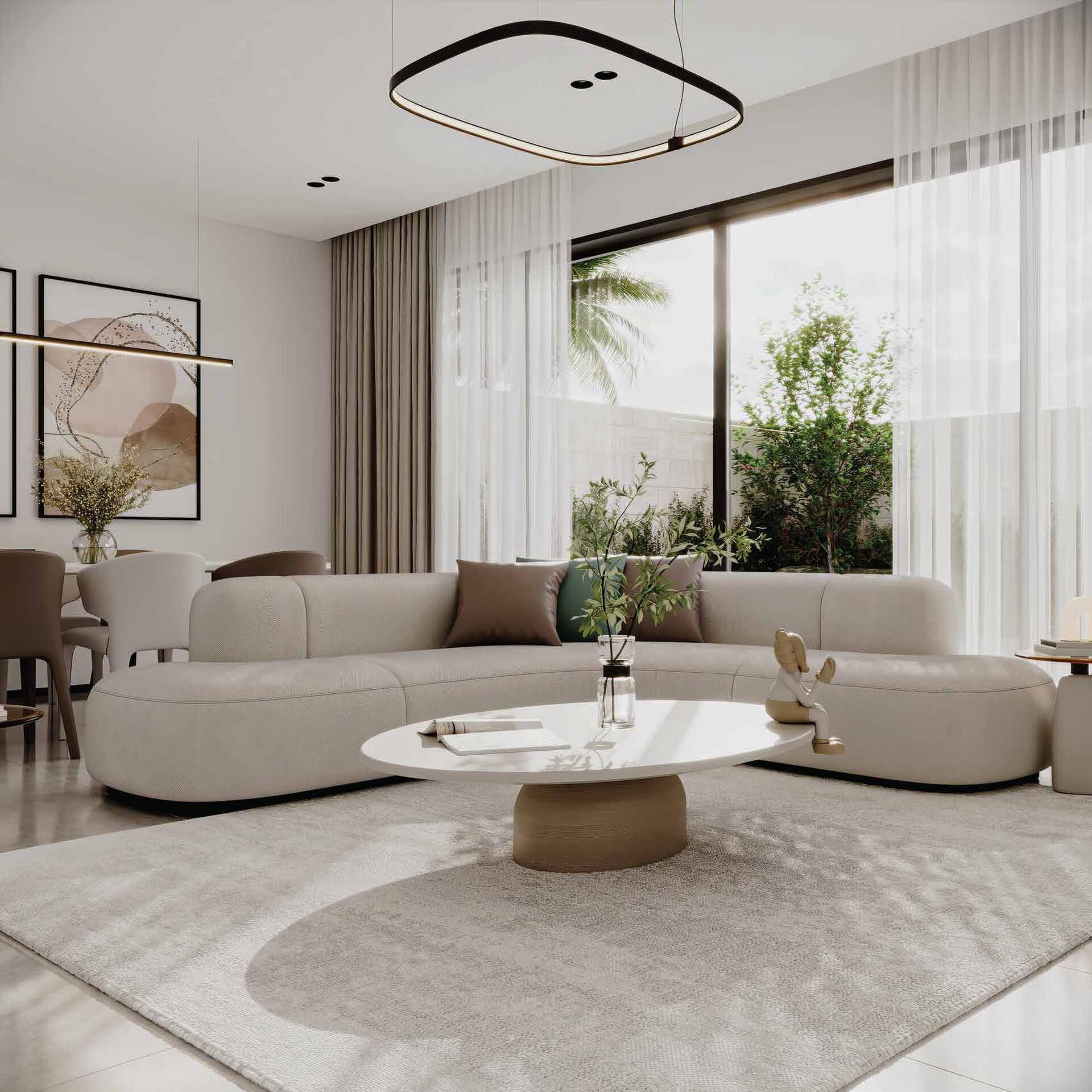 The project includes various types of residences: Town villas, Corner villas, and Standalone villas, available in configurations ranging from three to seven bedrooms. The fourth phase of the project offers Standalone villas with 5 bedrooms, a maid's room, and a private pool. The exterior of the buildings features refined minimalism: clean lines, natural materials, and smooth transitions between indoor and outdoor spaces emphasize the philosophy of peaceful living.